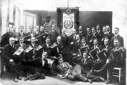 Stuhl sitzend) spielte seiner Zeit Bandoneon im Rothenburgsorter Orchester, und Gitarre spielte er auch.